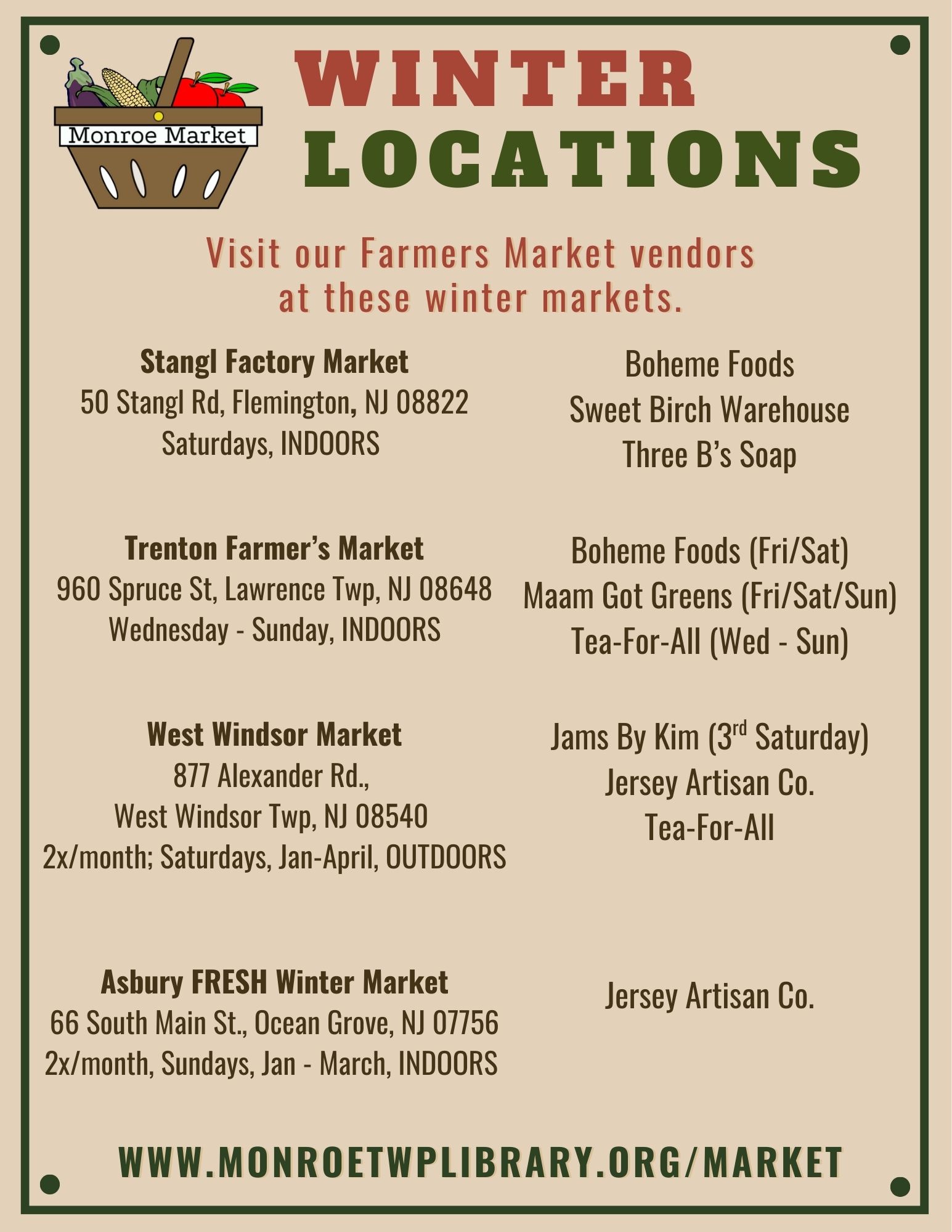Still have questions? Contact us at farmersmarket@monroetwplibrary.org or (732) 521-5000 x.163.