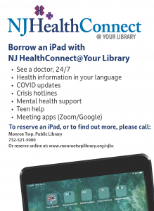 Did you know that you can now check out an iPad equipped with apps for Google Meet and Zoom to meet with a doctor virtually or conduct a job interview? Our Library is proud to loan iPads through our partnership with NJ HealthConnect@Your Library!